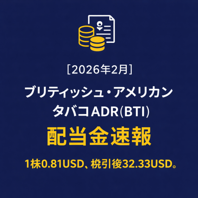 ブリティッシュ・アメリカン・タバコ 【2026年2月】ブリティッシュ・アメリカン・タバコ(BTI)配当金──1株0.81USD、税引後32.33USD/5,000円くらい。利回り5%台はまだ戦えるか?