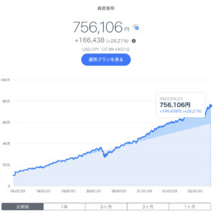 毎月1万円の積み立てでドルコスト平均法の理論で最適化されており、ちゃんと利益も出ているのが嬉しいですね😊