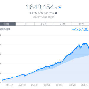 コツコツ積み立ててきた結果、着実に資産が成長しているのがわかります。特に2024年からの上昇トレンドが顕著で、ロボアドの恩恵を実感しています。