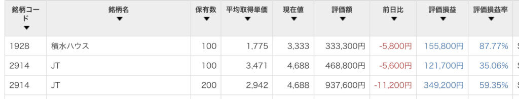 評価益もしっかり乗っており、配当と値上がり益の両取りという理想的な展開になっています。