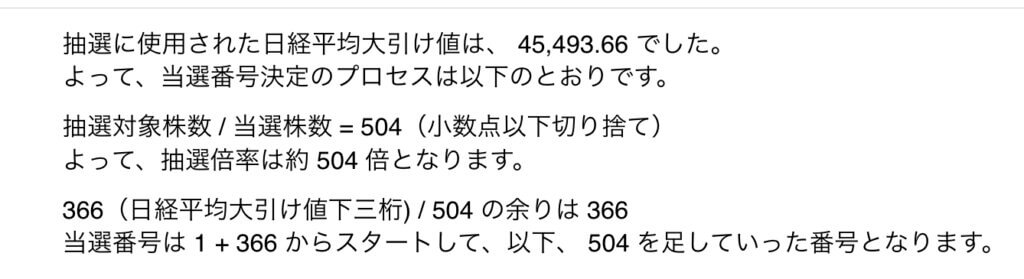 楽天証券はまだ抽選中みたいですが、結果が出ましたらまた追記します。