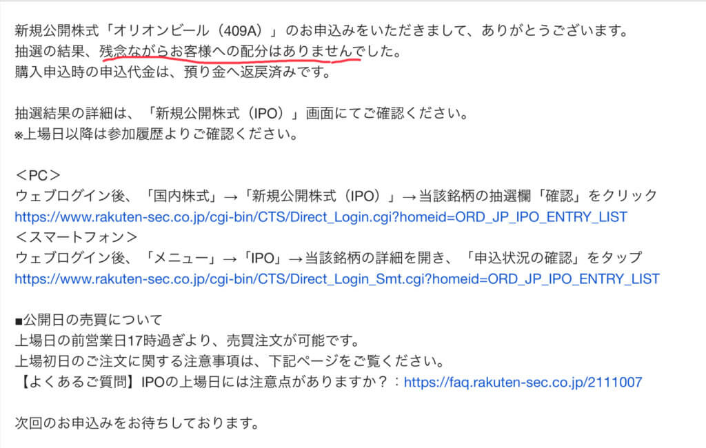 私自身も今回の落選を糧に、今後は主幹事・共同主幹事を中心に口座を増やし、戦略的に申し込んでいこうと思います。