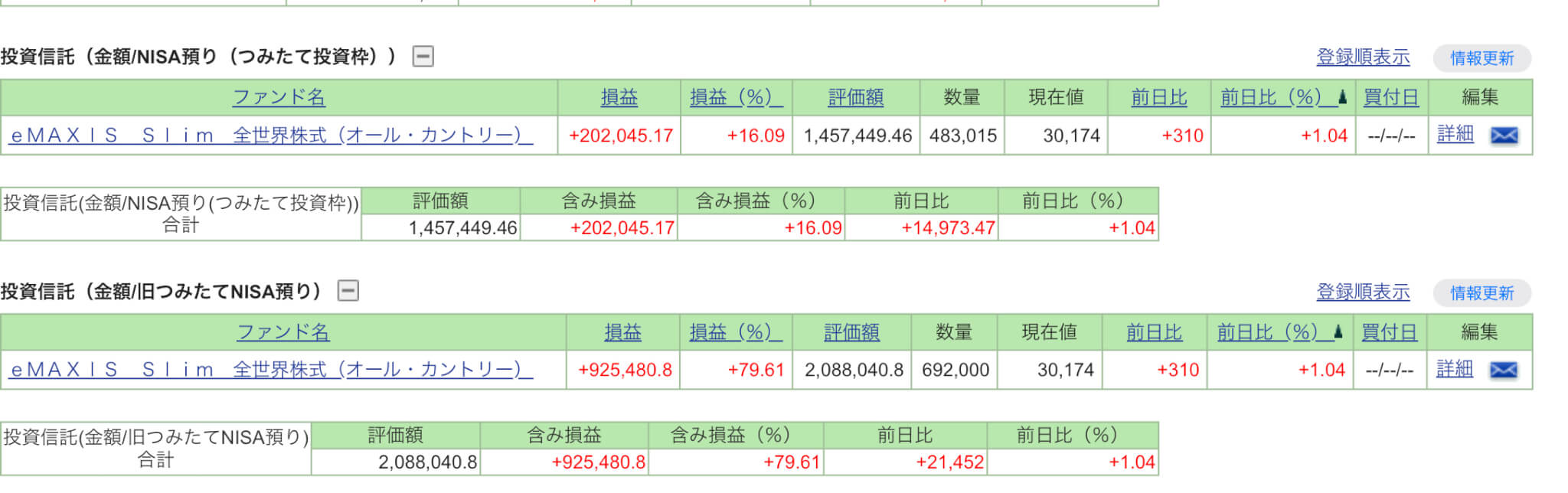 旧NISAは「早く買って長く持つ」効果で+79.6%、新NISA分も+16.09%と順調です。
