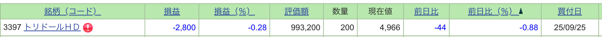 | 購入日 | 2025年9月25日(権利付き最終日の前日) |