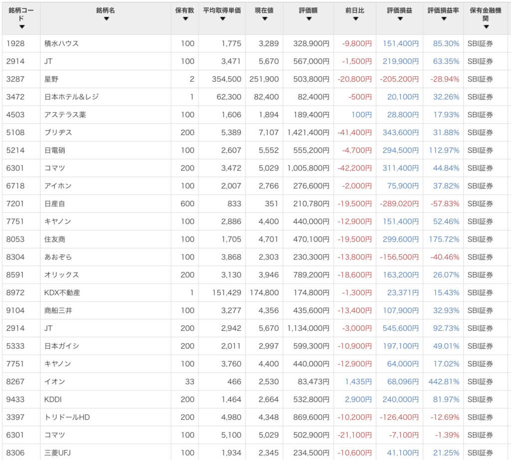 | コマツ(200株) | 1,005,800円 | ▲42,200円 | ▲4.2% |