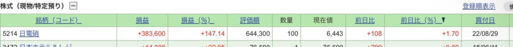 私は同社株を100株保有しており、含み益は+383,600円(+147.14%)に到達。