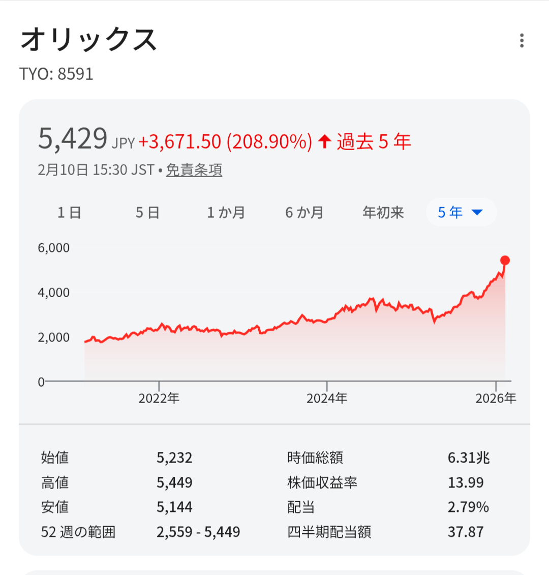 オリックスが2026年3月期第3四半期決算を発表し、株価は大きく上昇しました。